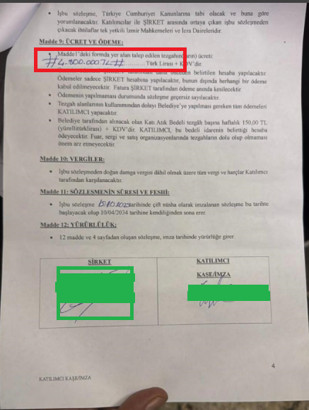 Bir tane pazar yeri kullanma yararlanma hakkının satışına yönelik imzalanan (yukarıda sunulan) sözleşmeyi incelediğimizde 1 Milyar TL’nin üzerinde hasılat elde edilebileceği kanısına vardık. Bir tezgah yerinin (iki de olabilir) 4.800.000 TL’ye satıldığı görülebilir.