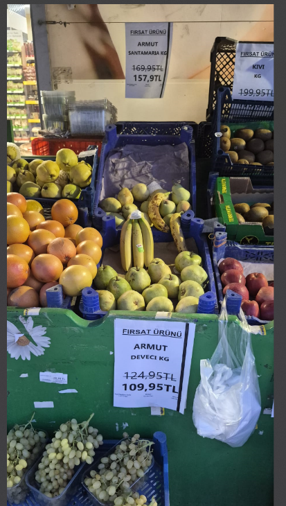 Pazar günü katlı pazara, saat 18.00 civarında gittim. Tezgahın birinin önünden tam geçerken, “hangi meyveyi alırsan kilosu 30 TL, 4 kg alırsan 100 TL” diye bağırıldığını duydum.