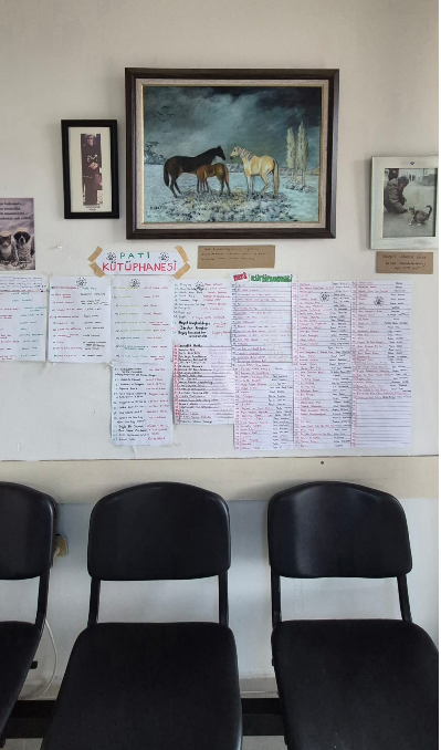 Poliklinik girişinin bekleme bölümünde “Pati Kütüphanesi” yazısı ve 193 adet kitabın yazarları ile birlikte listesini görünce “bu nedir?” diye merakla sordum.